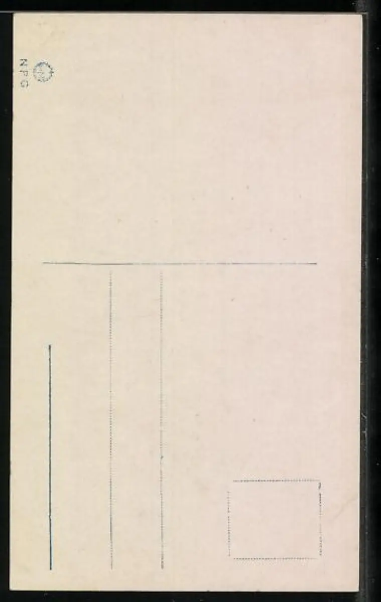 Personenbezogene Daten auf der Rückseite der Karte wurden durch blauen Textmarker unkenntlich gemacht. Die blauen Stellen sind auf die Vorderseite durchgeweicht und wirken sich negativ auf das Postkartenfoto aus