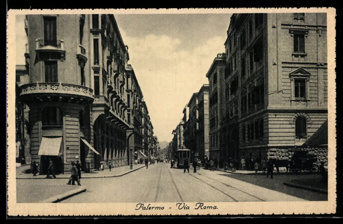 AK Palermo, Via Roma, Strassenbahn