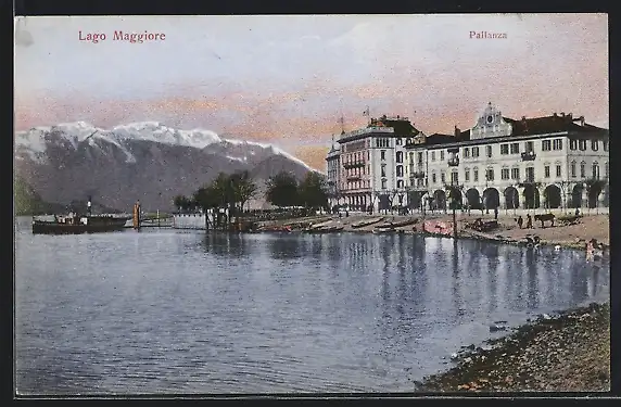 AK Pallanza, Ufer des Lago Maggiore mit Belle Vue Hotel, Dampfer