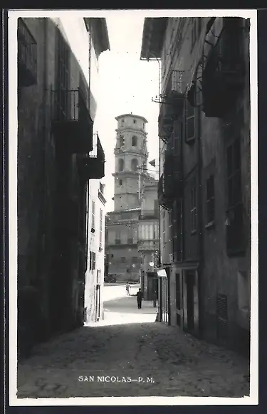 AK Palma de Mallorca, San Nicolas, Strassenpartie mit Turm