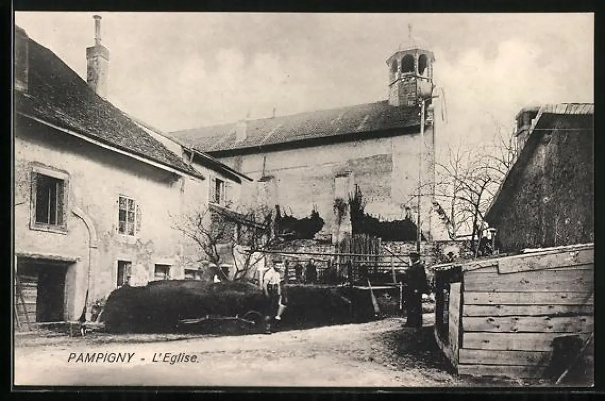 AK Pampigny, L'Eglise, Strassenpartie mit Kirche