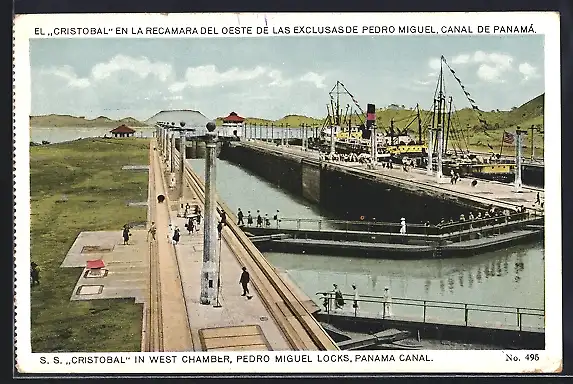 AK Panama Canal, S. S. Cristobal in West Chamber, Pedro Miquel Locks
