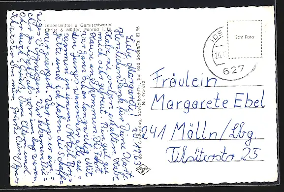 alte Ansichtskarte, gelaufen 1963, Briefmarke entfernt, guter Zustand
