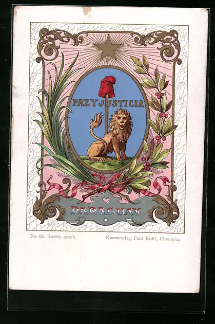 AK Paraguay, Pazyjusticia, Wappentier Löwe in Gold mit Stern