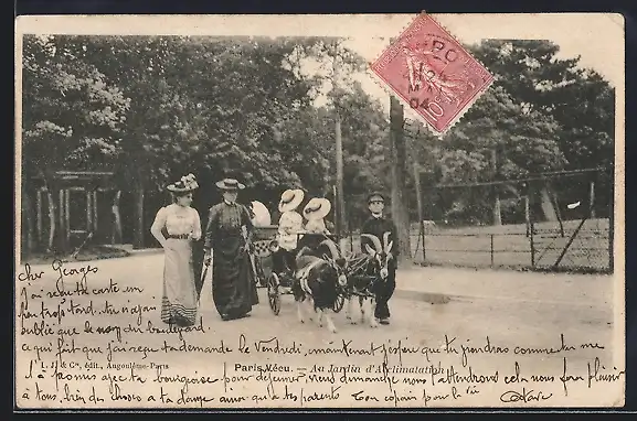 AK Paris, Au Jardin d`Acclimatation, Kinder fahren mit Ziegengespann