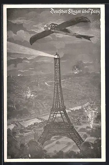AK Paris, Deutscher Luftflotten-Verein, Deutscher Flieger über Paris, Taube und Eiffelturm