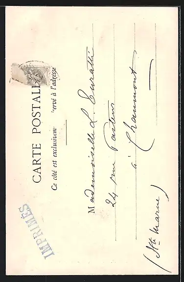 alte Ansichtskarte, gelaufen 1902, Briefmarke entfernt, rückseitig Oberflächenschaden, guter Zustand