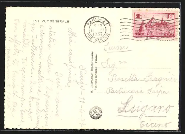 gelaufen 1937, rückseitig Oberflächenschaden, guter Zustand