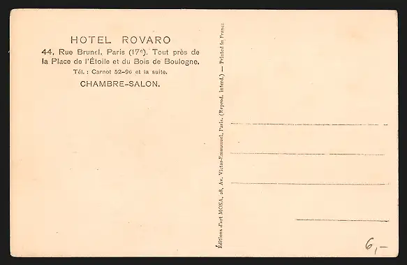 AK Paris, Hotel Rovaro, 44 Rue Brunel