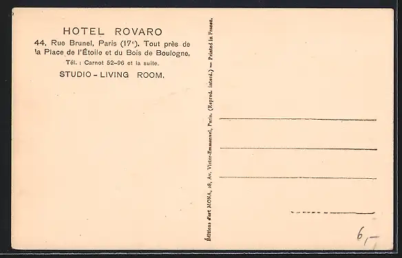 AK Paris, Hotel Rovaro, 44 Rue Brunel