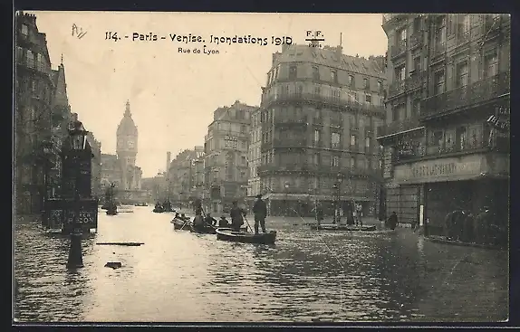 AK Paris, Inondations 1910 Rue de Lyon avec barques