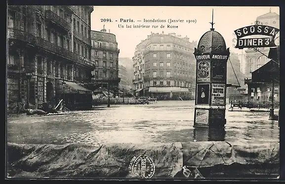 AK Paris, Inondations 1910, un lac intérieur rue de Rome