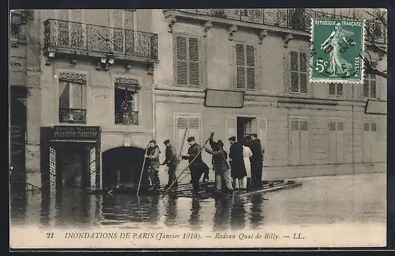 AK Paris, Inondations de 1910, Radeau Quai de Billy