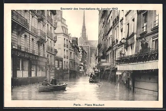 AK Paris, Inondations de janvier 1910 à Place Maubert avec bateau à rames