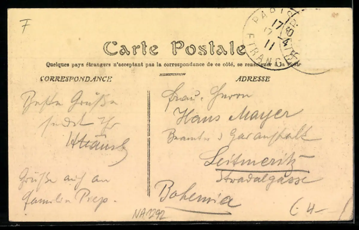 gelaufen 1911, Briefmarke entfernt, rückseitig Oberflächenschaden, Eckknick unten li., guter Zustand