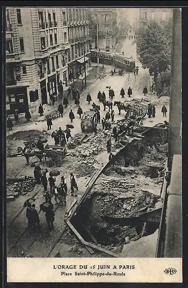 AK Paris, L`Orage du 15 Juin, Place Saint-Philippe-du-Roule, Aufgerissene Strasse
