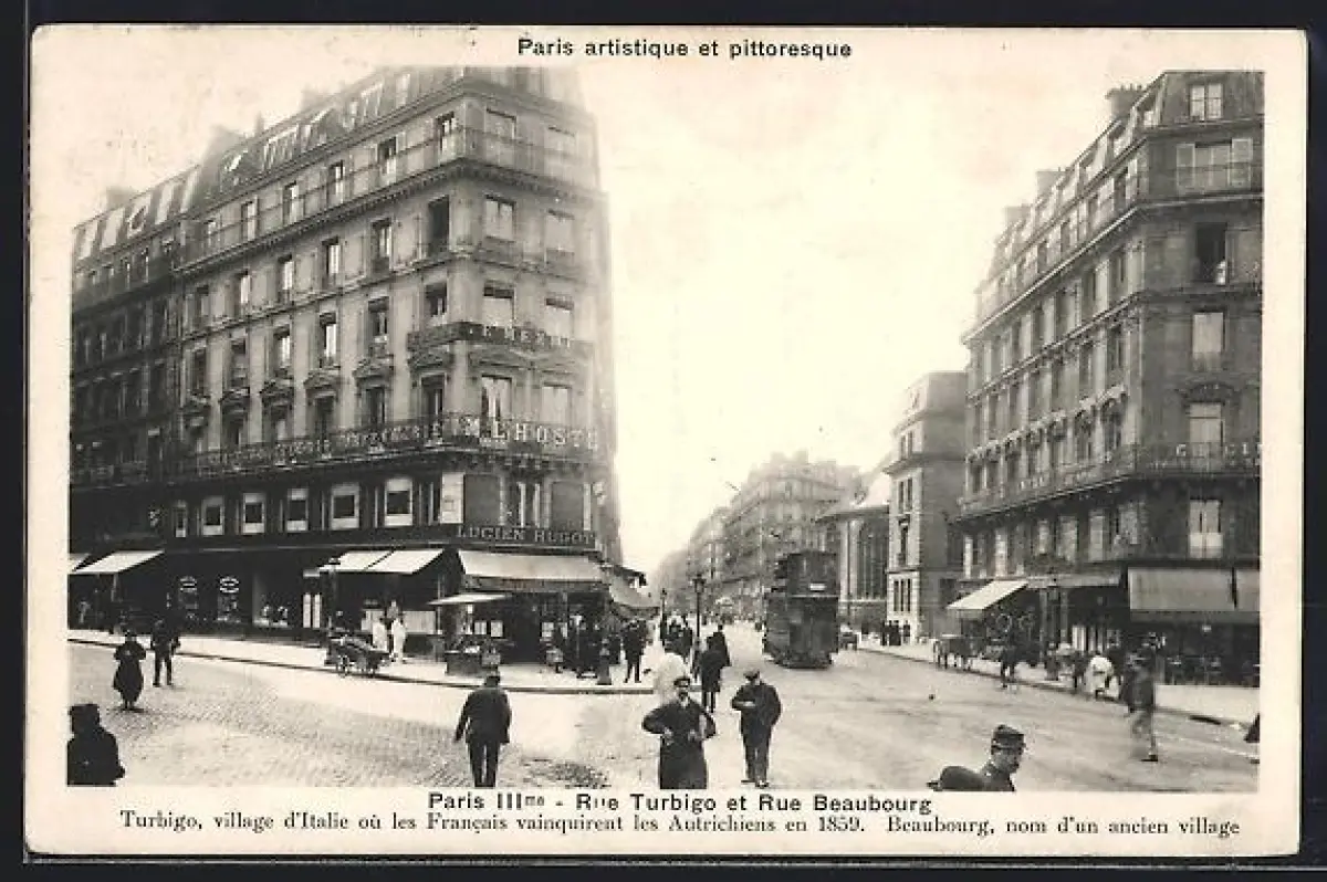 AK Paris, Rue Turbigo et Rue Beaubourg, Strassenbahn