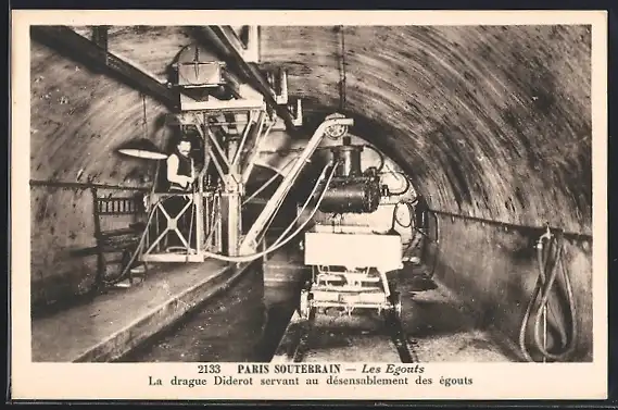 AK Paris-Souterrain, Les Egouts, La drague Diderot servant au désensablement des égouts
