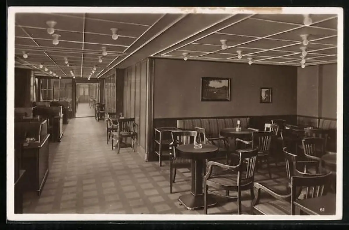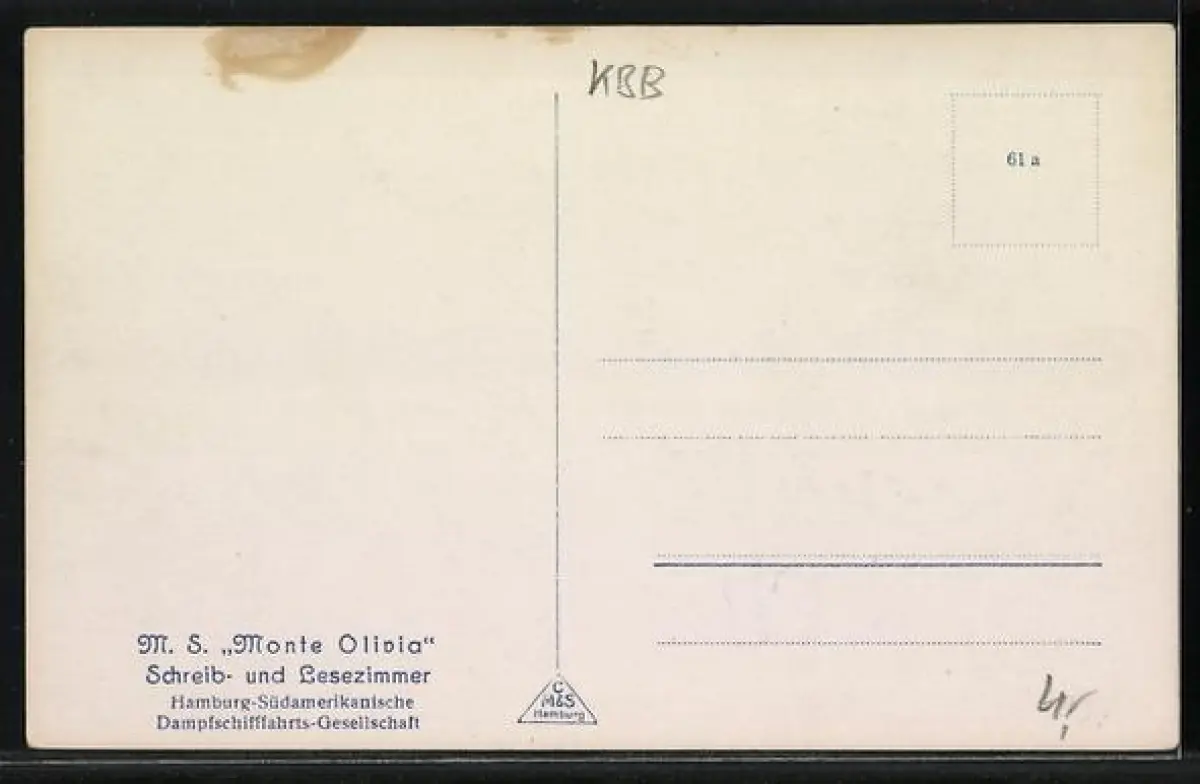 AK Passagierschiff M.S. Monte Olivia, Schreib-und Lesezimmer