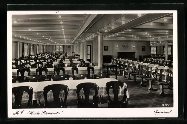 AK Passagierschiff MS Monte Sarmiento, Innenansicht des Speisesaals
