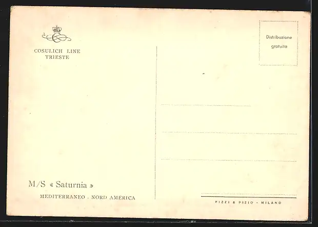 AK Passagierschiff MS Saturnia auf hoher See, Cosulich Line Trieste