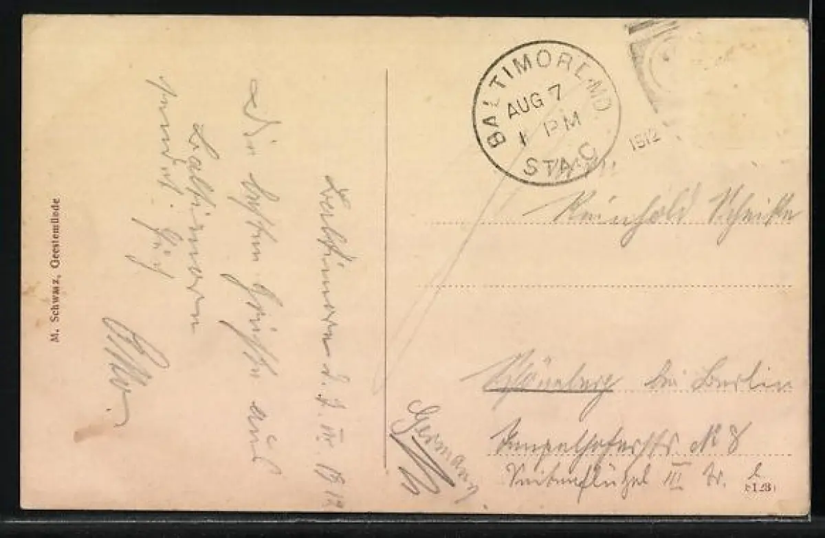 alte Ansichtskarte, gelaufen, Briefmarke entfernt, guter Zustand