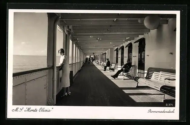 AK Passagierschiff Monte Olivia, Promenadendeck