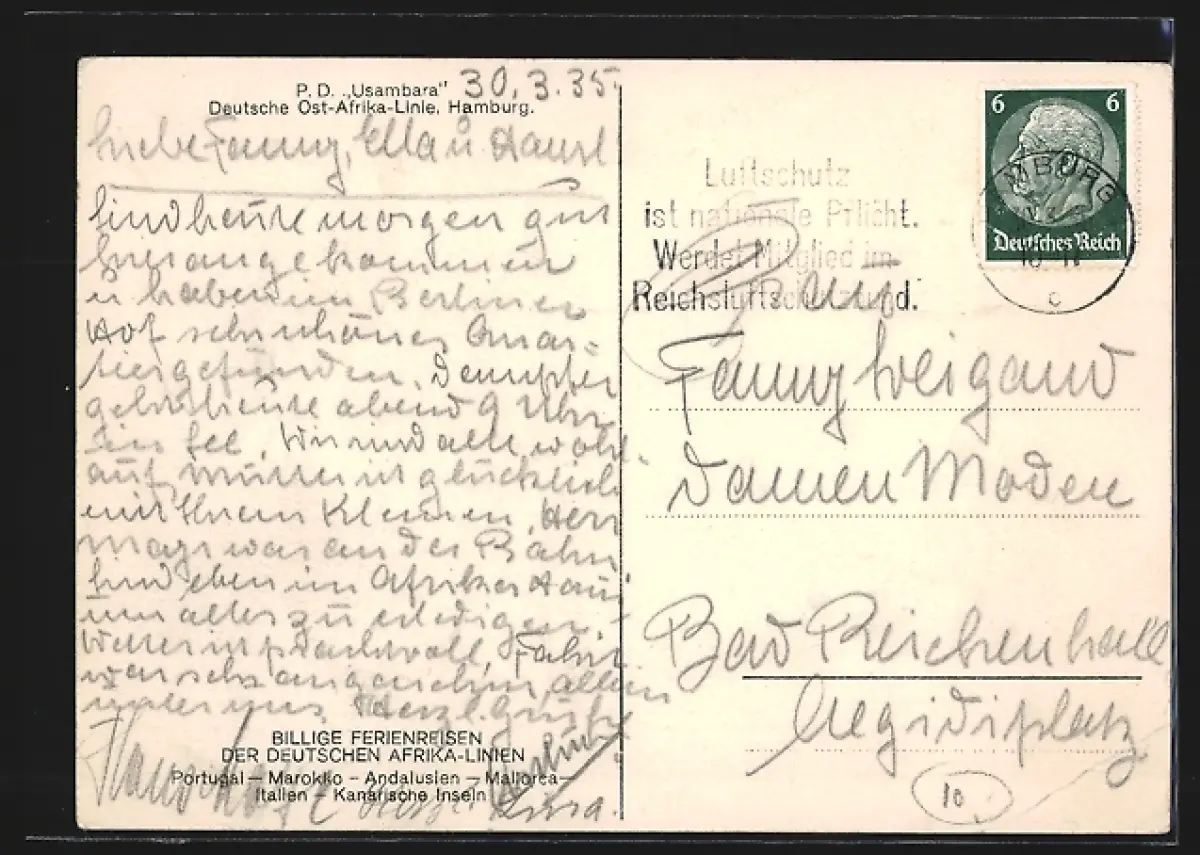 AK Passagierschiff P.D. Usambara in Küstennähe