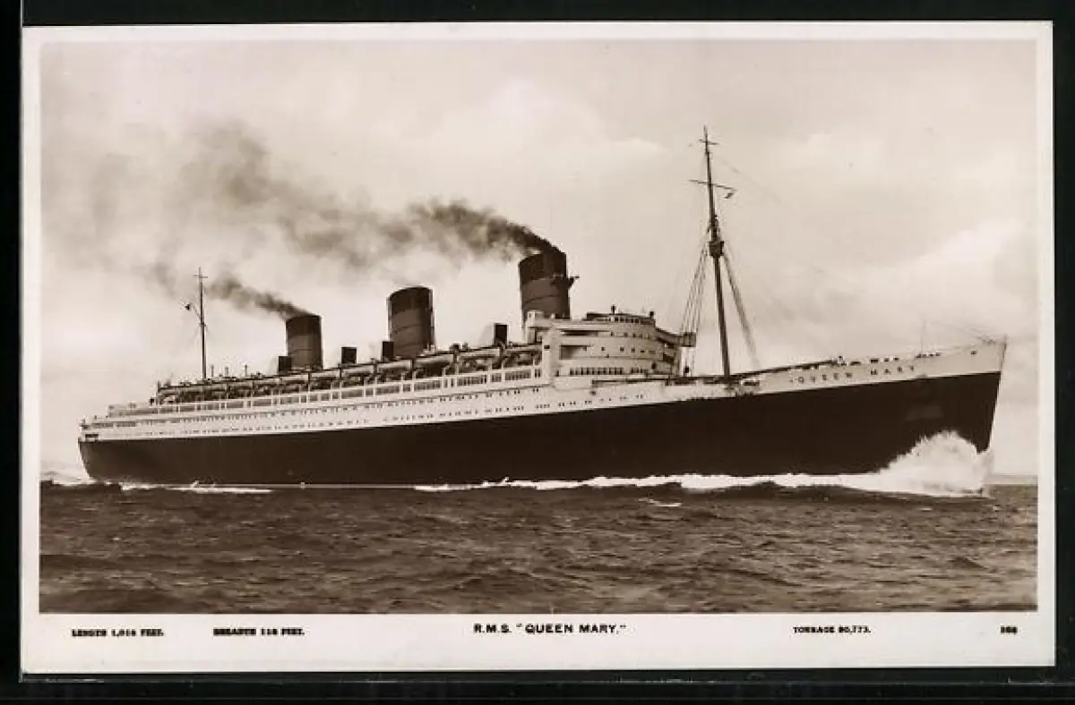 AK Passagierschiff RMS Queen Mary, auf hoher See