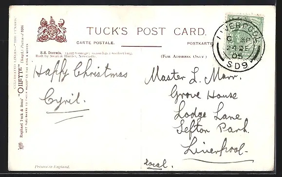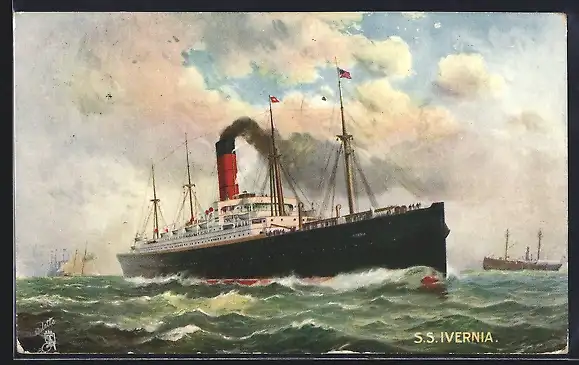 AK Passagierschiff S.S. Ivernia in Fahrt