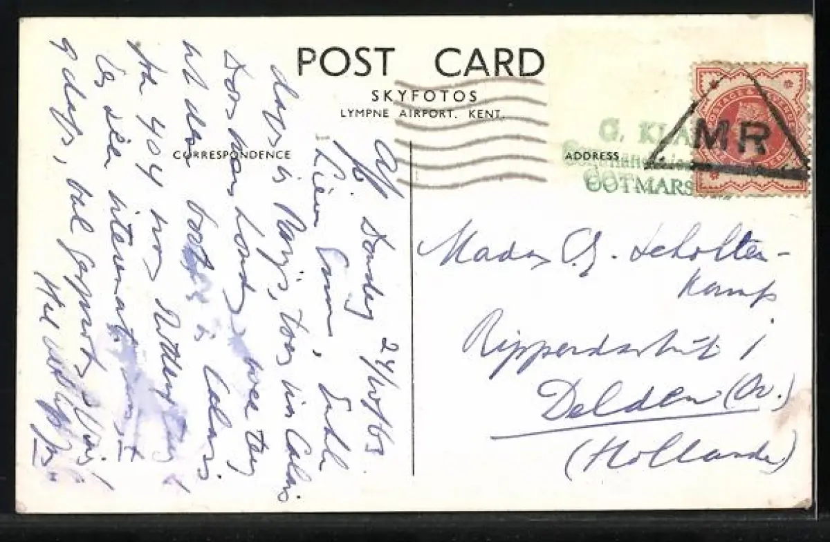 alte Ansichtskarte, gelaufen, Briefmarke entfernt, guter Zustand