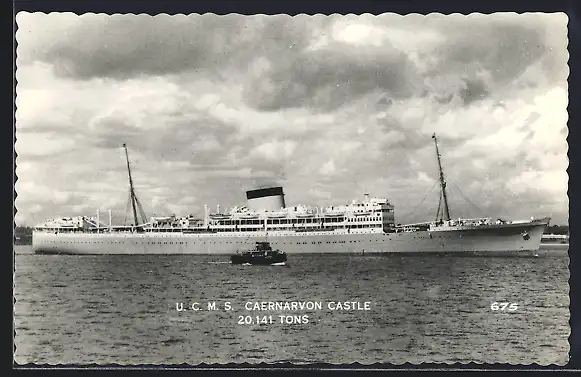 AK Passagierschiff UCMS Caernarvon Castle vor der Küste, Union-Castle Liner