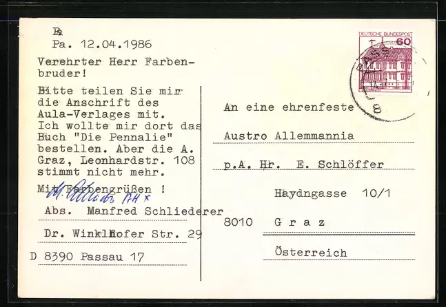 alte Ansichtskarte, gelaufen 1986, Eckknick rechts oben, guter Zustand