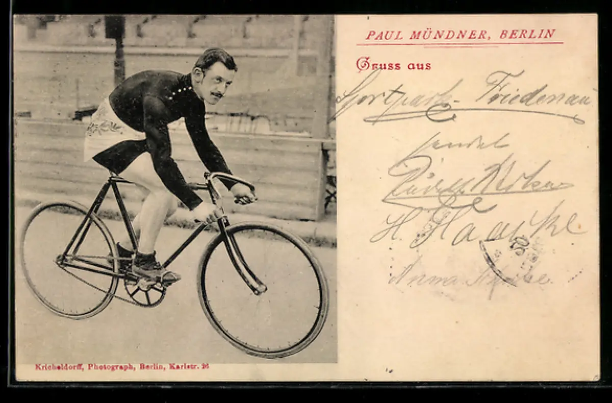 AK Paul Mündner aus Berlin auf seinem Rennrad, Radsport