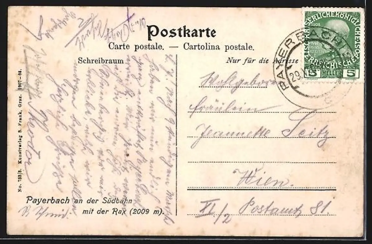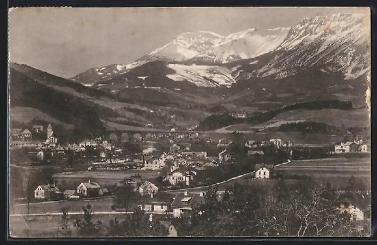 AK Payerbach an der Südbahn, Ortsansicht mit der Rax