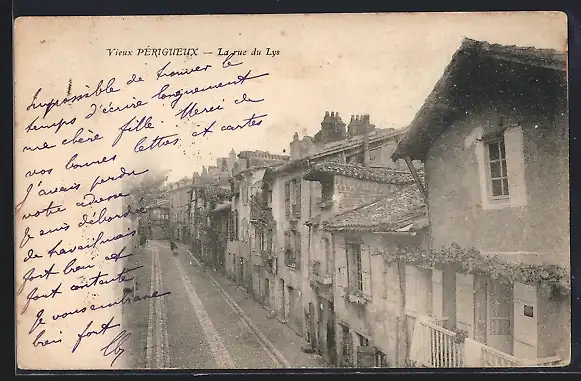 AK Périgueux, La rue du Lys et les maisons anciennes
