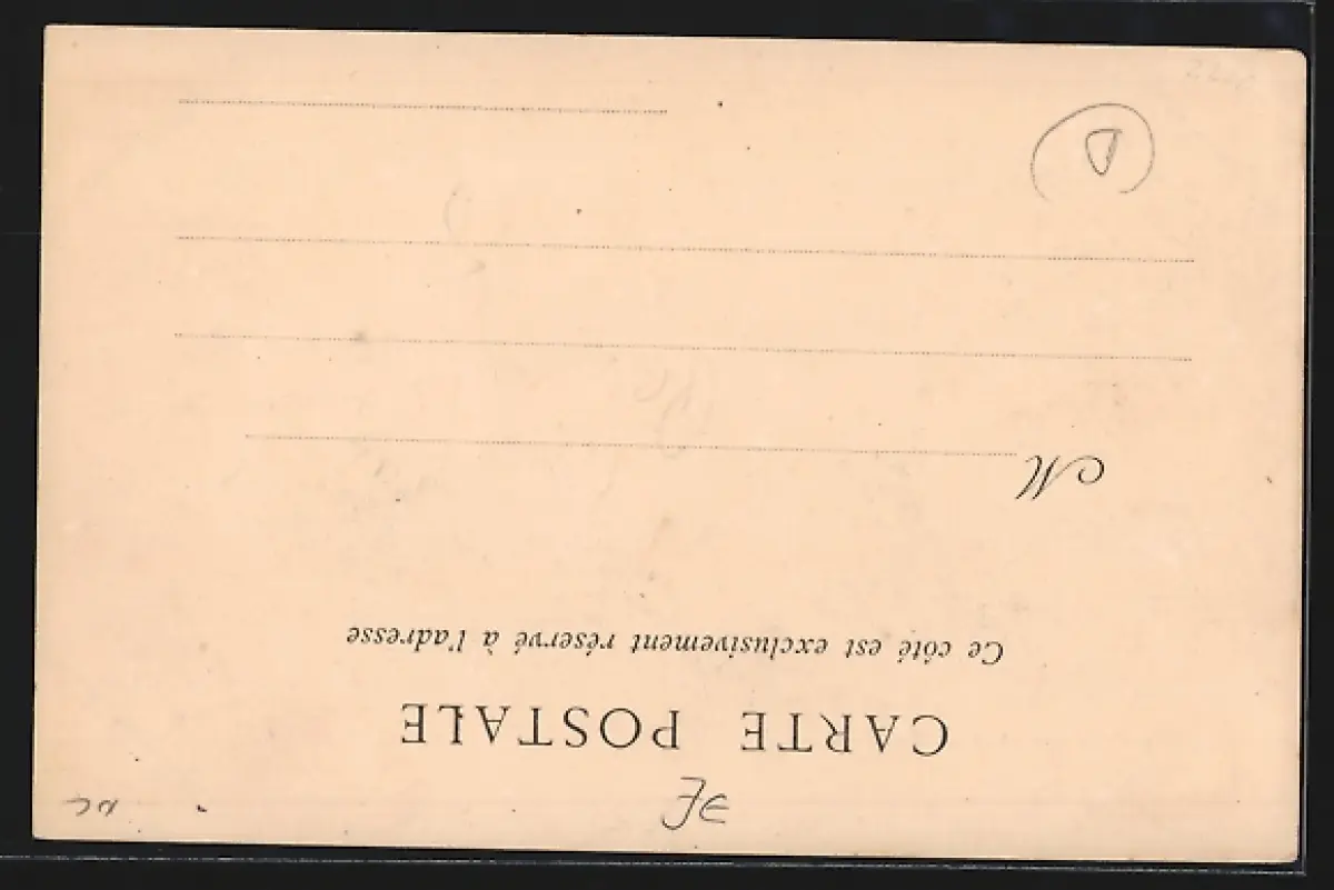 Personenbezogene Daten auf der Rückseite der Karte wurden durch blauen Textmarker unkenntlich gemacht. Die blauen Stellen sind auf die Vorderseite durchgeweicht und wirken sich negativ auf das Postkartenfoto aus