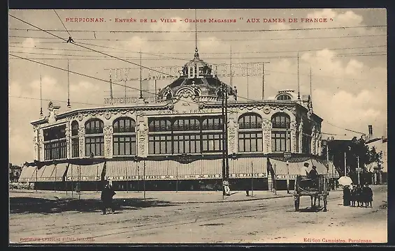 AK Perpignan, Entrée de la Ville, Grand Magasin Aux Dames de France