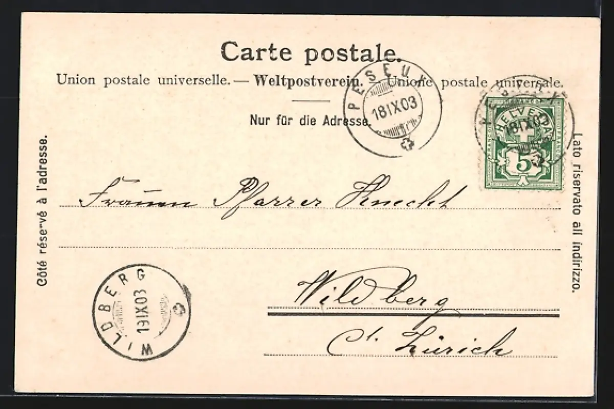 alte Ansichtskarte, gelaufen 1903, Stempelspur, guter Zustand
