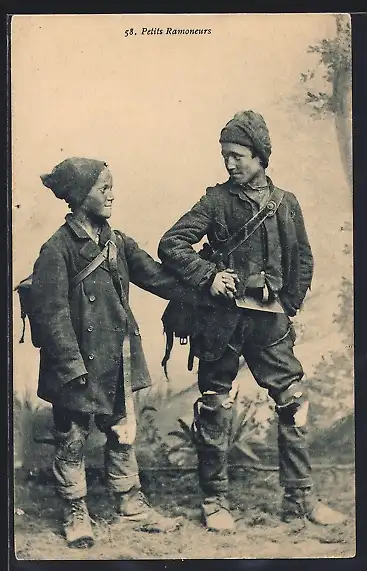 AK Petits Ramoneurs, kleine Schornsteinfeger Hand in Hand