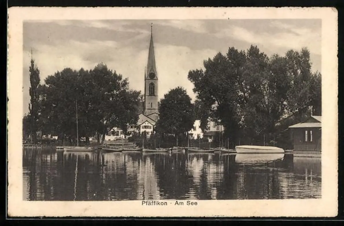 AK Pfäffikon /ZH, Am See mit Kirche