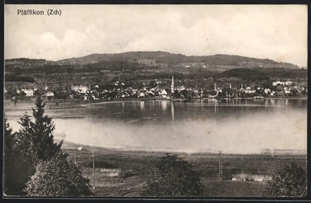 AK Pfäffikon /Zch, Ortspanorama mit Gewässer