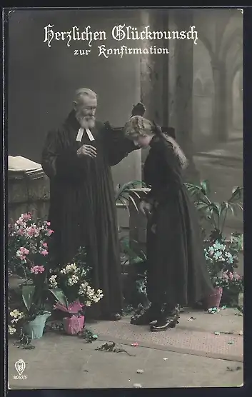 AK Pfarrer segnet ein Mädchen zu ihrer Konfirmation