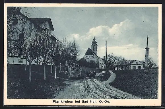 AK Pfarrkirchen b. Bad Hall, Strassenansicht mit Blick zur Kirche