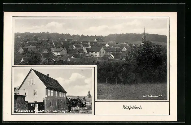 AK Pfiffelbach, Gasthaus und Fleischerei Walter Cyliax, Totalansicht
