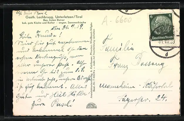 alte Ansichtskarte, gelaufen 1939, guter Zustand
