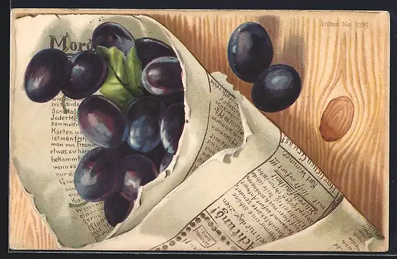 AK Pflaumen in einer Papiertüte, Schreibfaul