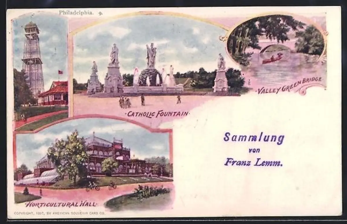 AK Philadelphia, PA, Catholic Fountain, Valley Green Bridge, Horticultural Hall