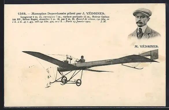 AK Pilot Védrines mit seinem Flugzeug Deperdussin