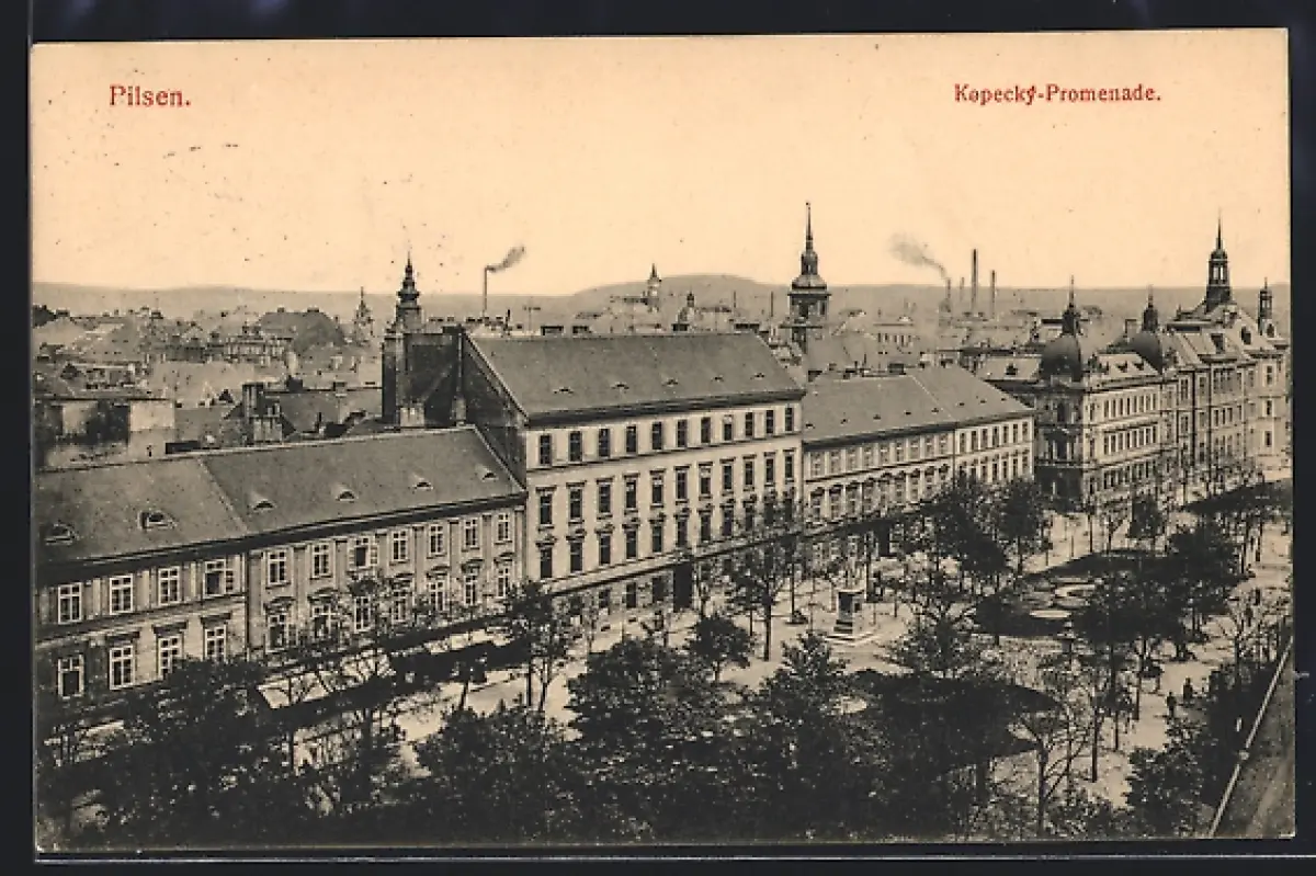 AK Pilsen, Kopecky-Promenade aus der Vogelschau